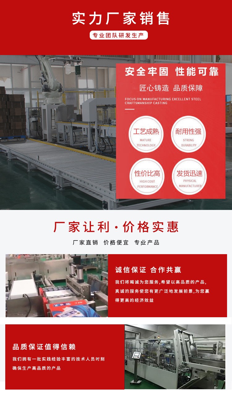 介紹:非旋轉(zhuǎn)式立柱碼垛機(jī):這種類型的立柱碼垛機(jī)不具備旋轉(zhuǎn)功能,其設(shè)計(jì)更為簡單且結(jié)構(gòu)穩(wěn)定。它適用于具有相對固定的碼垛規(guī)格和穩(wěn)定生產(chǎn)線的情況。由于不需要旋轉(zhuǎn),這類碼垛機(jī)往往更加節(jié)省成本,并且在穩(wěn)定生產(chǎn)環(huán)境下能夠運(yùn)行。