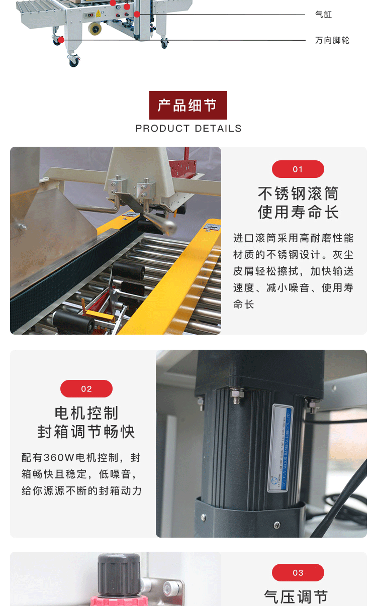 介紹:全自動封箱機WRE-50可以自動調(diào)節(jié)紙箱高度及寬度,更換不同規(guī)格紙箱無需人工調(diào)節(jié);推薦更換紙箱規(guī)格頻繁的用戶使用。 該款封箱機廣泛應(yīng)用于食品、醫(yī)藥、玩具、煙草、日化、電子等行業(yè)。 產(chǎn)品別稱:全自動封箱機、工字封箱機、一字封箱機、十字封箱機、四角邊封箱機、上下驅(qū)動封箱機、左右驅(qū)動封箱機、快遞封箱機、電商封箱機、膠帶封箱機、快速封箱機、可調(diào)封箱機、伺服封箱機
